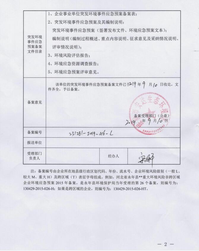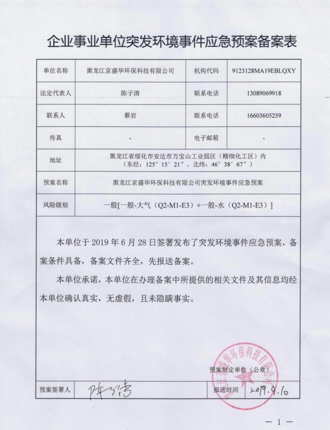 企業事業單位突發環境事件應急預案備案表