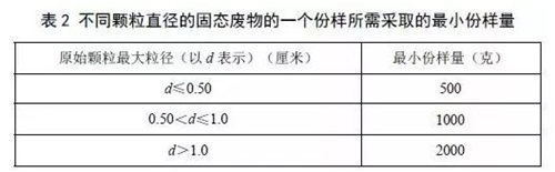b)依據(jù)固態(tài)廢物的原始顆粒**粒徑,不小于表2中規(guī)定的質(zhì)量。